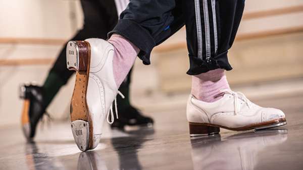 Steppskor rekommenderas att ha då det gör dansen mycket roligare, men skor med hård sula och låg, bred klack fungerar också.